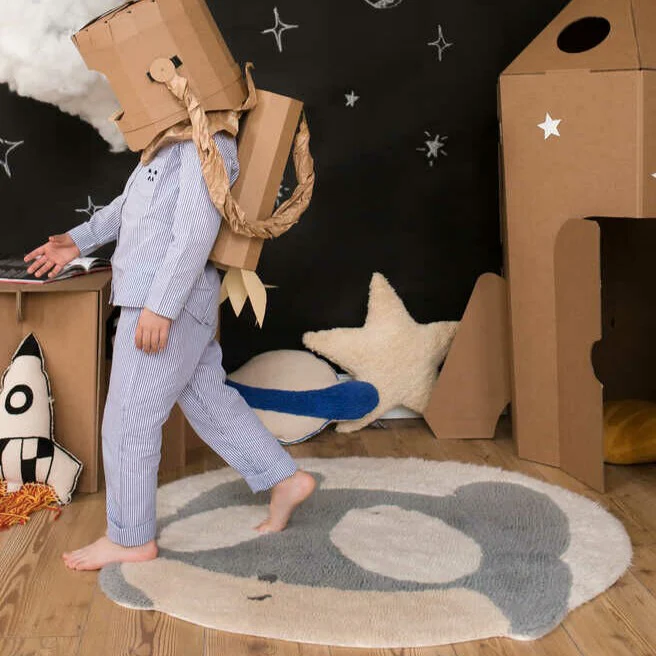 Imagina tu mundo a través de los ojos del personaje del ratón cósmico de Edgar Plans, nacido como un soñador que persigue grandes logros… ¿Y quién no ha soñado alguna vez con convertirse en astronauta para cambiar la visión del mundo? Una alfombra de forma redonda que se convertirá en el elemento de decoración de acento en una habitación infantil con temática espacial o en cualquier rincón de la casa, ¡para un toque de fantasía cósmica con un ambiente artístico!