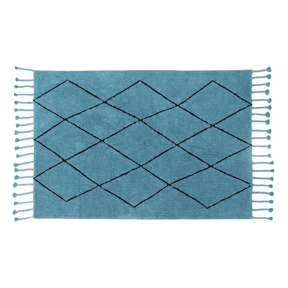De inspiración escandinava y de color sapphire, la solución perfecta para una decoración de líneas sencillas, concepto actual y versatilidad. Alfombra 100% algodón, lavable en lavadora doméstica (7 kg), está disponible en los colores tendencia de la temporada. Por su diseño, forma y color, encaja en cualquier estancia desde habitación infantil para bebé, niña y niño hasta para salón, dormitorio, recibidor, terraza o jardín. Hecha a mano por artesanos, es segura al usar tintes naturales y, al ser de algodón, es ligera, flexible y suave.