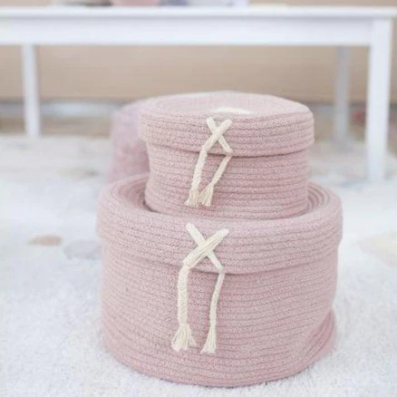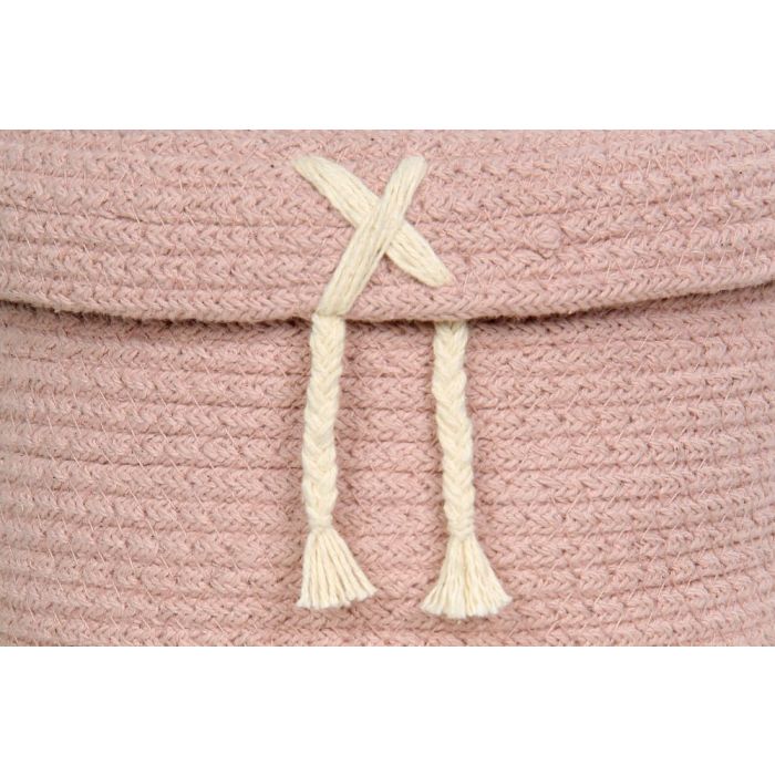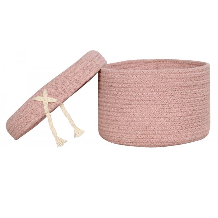 Cesta con tapa ideal para guardar tus pequeños tesoros como caramelos, cromos, legos… Las trenzas están hechas a mano formando la cinta de la tapa. Cada una de las cestas decorativa se han confeccionado una a una, por lo que no hay dos cestas iguales.